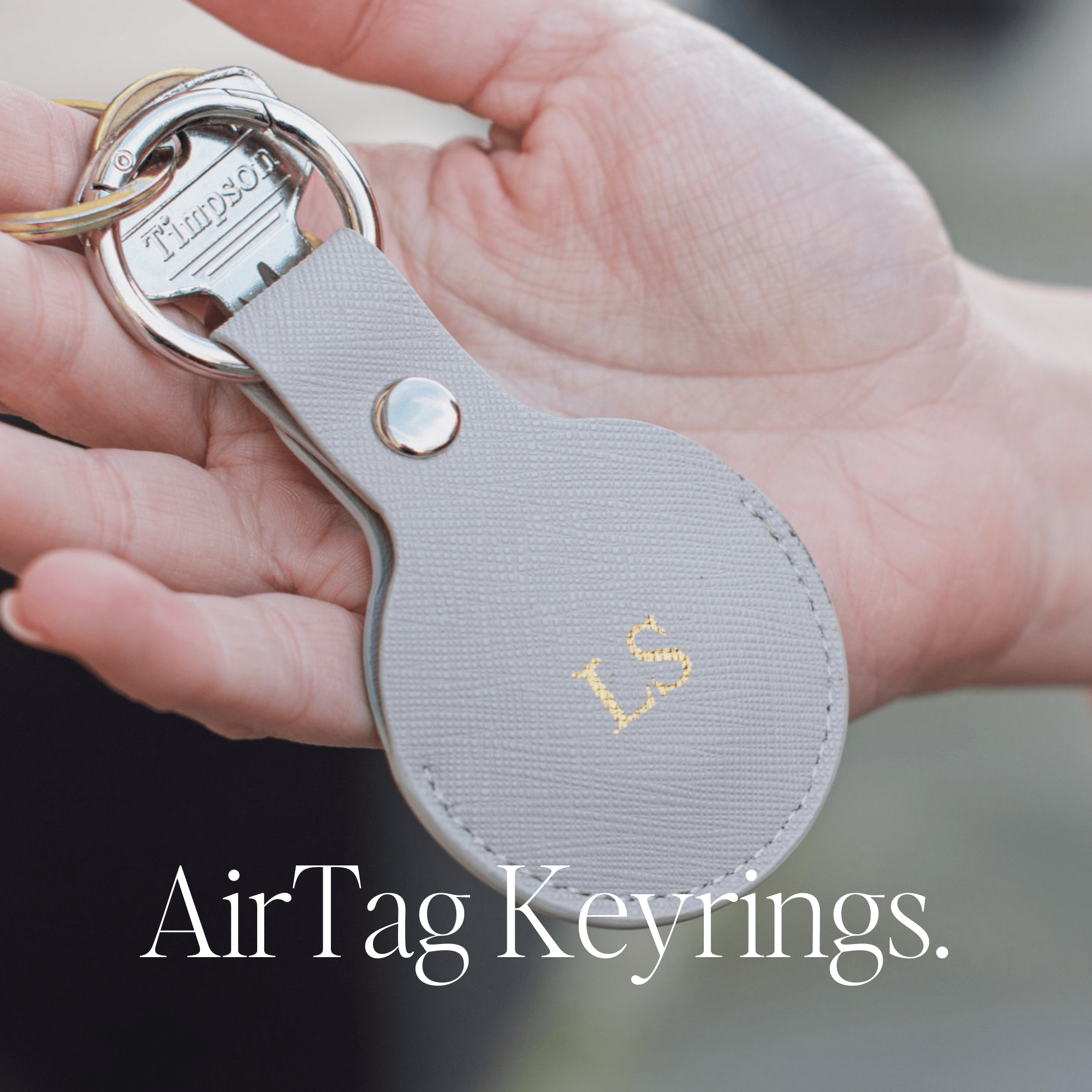 Dove Grey Saffiano Leather Personalized Airtag Keyring