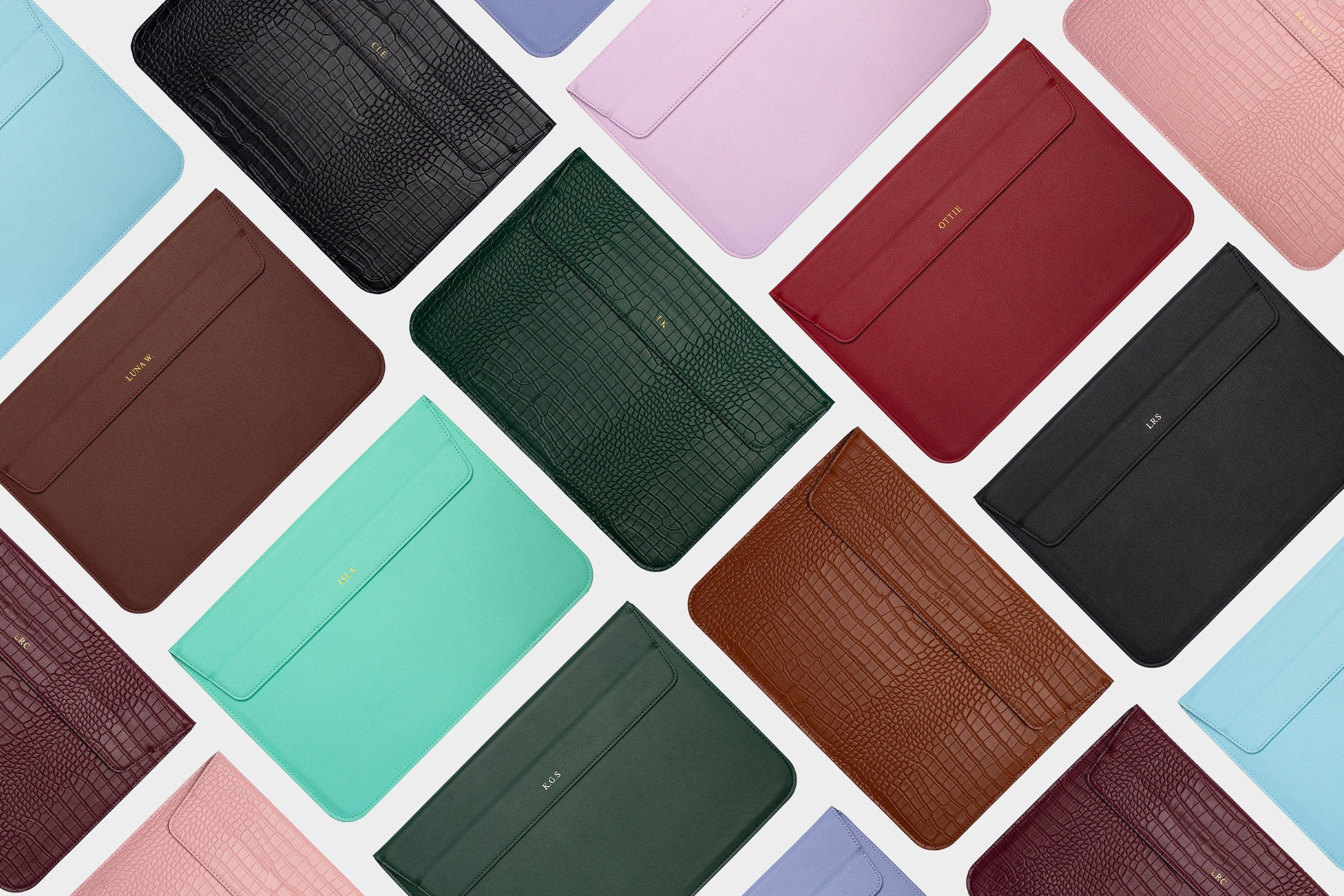 Personalized with a unique monogram, these cases are available in a variety of colors and finishes to compliment any occasion.