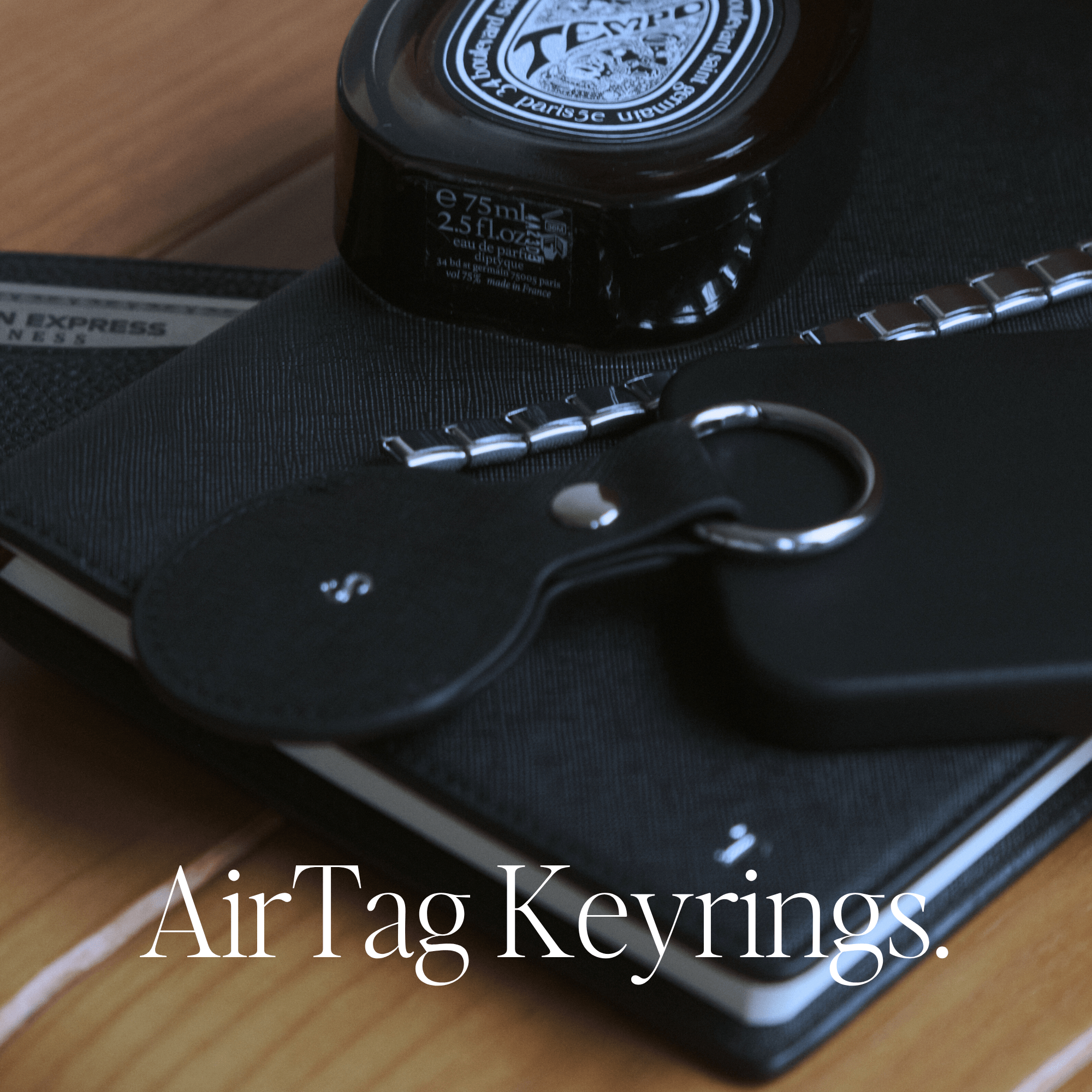 Dove Grey Saffiano Leather Personalized Airtag Keyring